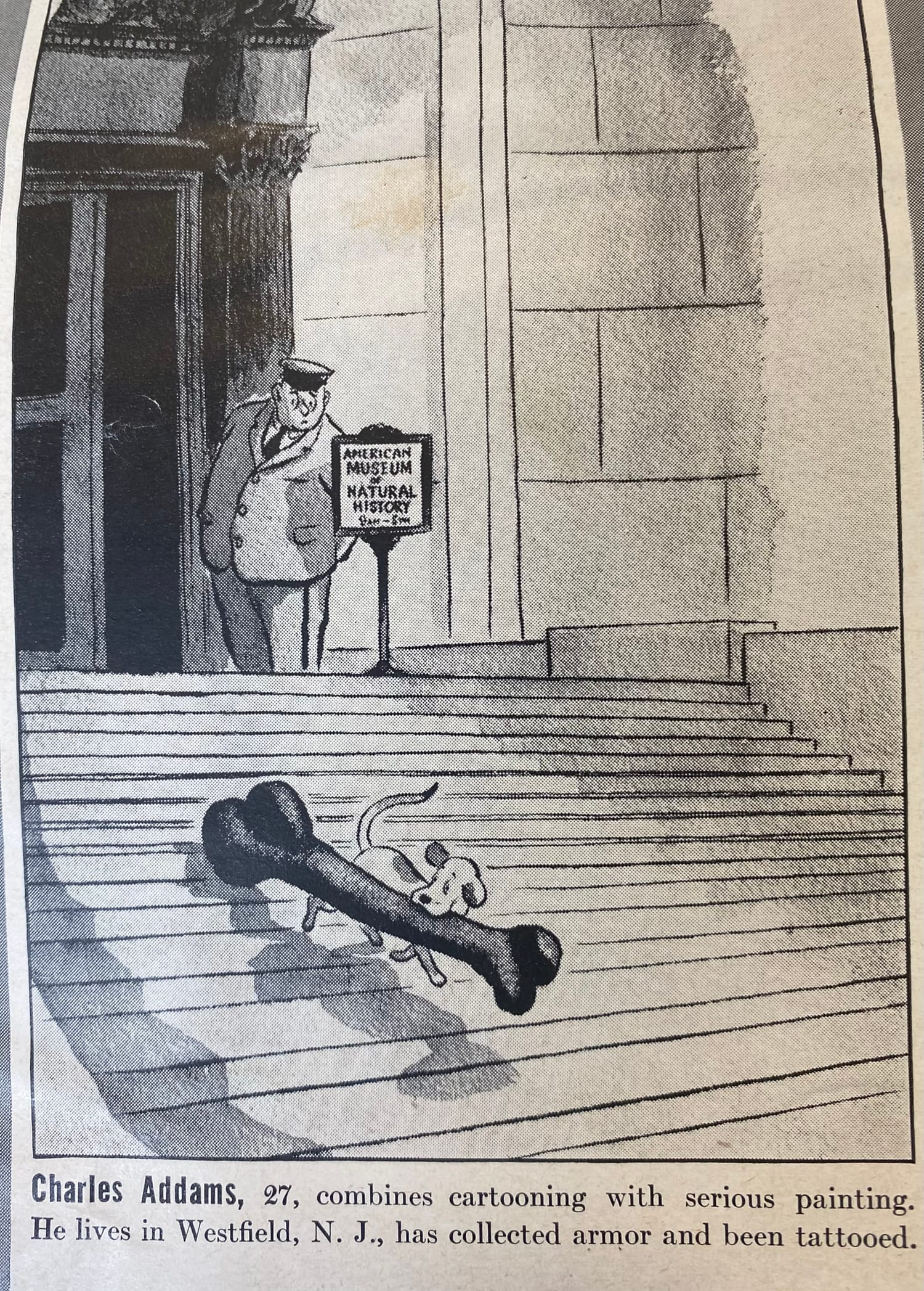Here are two examples from The New Yorker, including an appearance by the great Charles Addams, creator (of course) of the Addams Family.